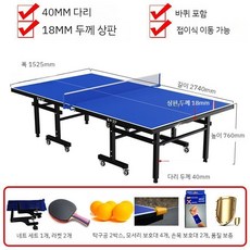 국제공인규격 탁구대 접이식 네트포함 풀세트 실내 이동식 직장인 국제표준 탁구, 바퀴있음-테이블두께18mm