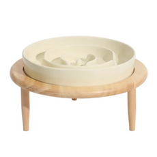 강아지 급체방지 고양이 슬로밀 도자기 식기 밥그릇, 1개, 레몬크림 밀+받침대 포함 / L사이즈