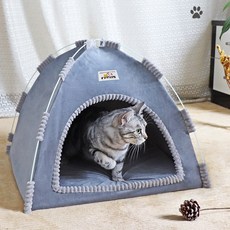 고양이텐트 고양이집 애견하우스 사계절 쿠션포함 휴대용 간편설치, 4.윈터그레이+L(52x52x42cm), 1개