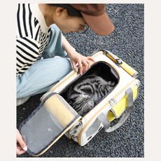 ZOZOFO 고양이 이동장 강아지 이동가방 반려동물 이동가방 삼면통풍 이동가방+이너쿠션, 담황색-[44*28*35cm], 1개