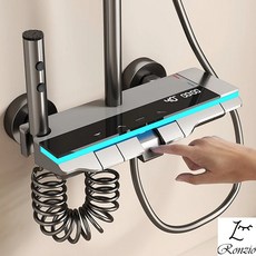 ZOZOFO LCD 디스플레이 온도 샤워기 수압상승 욕실청소 온도체크 샤워노즐 + 1.5m 호스, 블랙, 1개