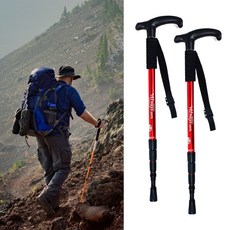 4단 접이식 등산스틱 T자형 휴대용 초경량 접이식스틱 지팡이 2P, 4단 레드 2p, 2개
