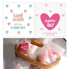 경지사 부활절 1구 접착식비닐 2종 1세트 (60매) (파랑하트+분홍하트) 부활절 계란포장 비닐봉투