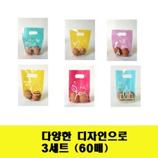 경지사 부활절 계란 2구 손잡이 비닐가방 다양한 디자인 3세트 (60매) 귀여운 부활절 계란포장 비닐봉투, 3개