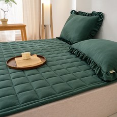 바자르 캐롤리 극세사 고정밴딩 침대패드, 딥그린