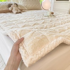 바숨 고정밴딩 겨울 극세사 침대패드, 크림아이보리