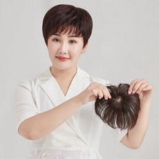여성 가발 볼륨커버 인모 정수리 부분가발 남녀 공용 가발 원핀 중년가발 단발, 1개, 다크 브라운