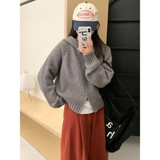 쇼퍼 데일리 캐쥬얼 부드러운 니트 집업 후드 점퍼 가디건