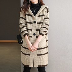 [오버나인] 여성용 포근한 울터치 후드 롱 로브 가디건
