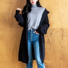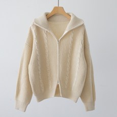 제니트 여성 포근한 투웨이 하찌 꽈배기 루즈핏 하이넥 니트 긴팔 집업 가디건