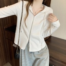 서진맘 여성 캐주얼 심플 무지 투웨이 집업 후드 가디건
