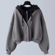 크로스오버 후드 가디건 여 한국형 캐주얼 집업 캐시미어 가을 후드 점퍼 베이직 오버핏 일반 후드 집업