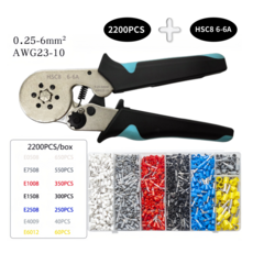 펜홀단자2200PCS+전문용 압착기6각 HSC8 6-6A(실버) 페룰 페놀 ferrule 핀 커넥터 터미널, 1세트