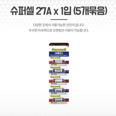 슈퍼셀 27A12V 알카라인건전지 1입 5P 미니 배터리 12V건전지 알카라인전지 27A건전지 밧데리, 5개