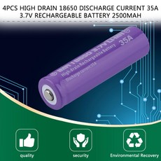 Homgrace 4pcs 높은 하수구 18650 방전 전류 35A 3.7V 재충전 전지 2500mAh, 4개