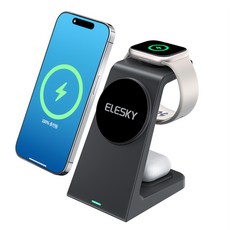 ELESKY엘스키 맥세이프 3in1 무선충전기 애플워치 아이폰 에어팟 호환 거치대 W69, 블랙, 1개