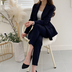 여자 정장은 일반적으로 재킷과 스커트, 또는 재킷과 바지의 조합으로 구성됩니다.
