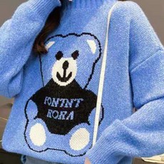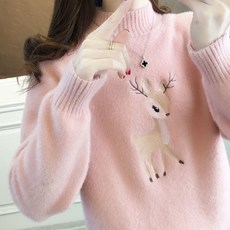 스타일아유 여성용 울 반폴라 사슴 자수 패턴 밍크 데일리 니트 폴라 니트티셔츠 가을 겨울 [AYBYKN0428]