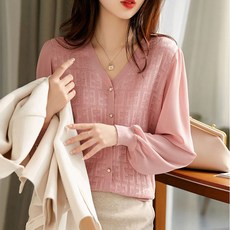 ROYALBELLE 여성 브이넥 긴팔 니트 셔츠 세련된 디자인 패션 캐주얼 니트웨어 K0111703