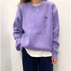 온미올렛 여성 부드러운 라운드넥 긴팔 니트 니트티