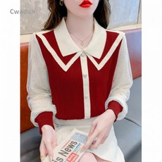 Cwadun 가을 스웨터 여성 탑 칼라 니트웨어