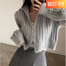 라파클럽 여성 라운드 꽈배기 니트 가디건 스웨터