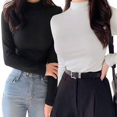 모던바이브 여성 반목티 반목 폴라 긴팔 티셔츠 2종세트