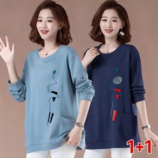 스타일아유 1+1(2종세트)여성 봄 가을 중년 엄마 캐주얼 오버핏 긴팔 프린팅 티셔츠 TS2352