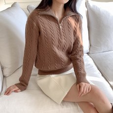 라파클럽 여성 라운드 꽈배기 니트 가디건 스웨터