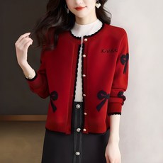 해피유통 여성 스웨터 쉬 아우터 긴팔 루즈핏 리본패턴 니트 가디건