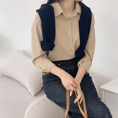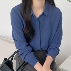 데일로엔 여성 심플 카라넥 긴팔 셔츠 블라우스