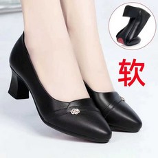 봄 가죽 힐 여성 신발, 1개, 240 검은색