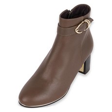 도오빠 후크앙 여성 소가죽 부츠 부티 3CM 키높이 통굽 앵클 미들 지퍼 천연 가죽 브라운 여자부츠 봄 가을 신발
