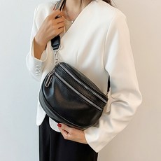 미나티 여성용 이중 지퍼 반달 라운드 가죽 크로스백 E19