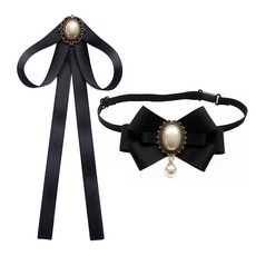 여성 넥타이 리본브로치 컬렉션 엔틱진주 넥카라 옷핀 2종세트 Women's bow tie
