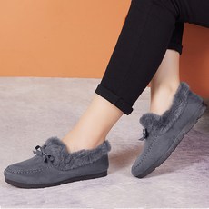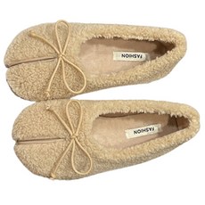 콤마슈 여성용 퍼 리본 플랫 따뜻한 털단화 FR1811