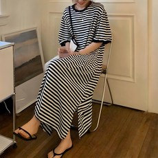 위시엘 빅사이즈 부드러운 스트라이프 니트 롱 원피스