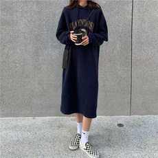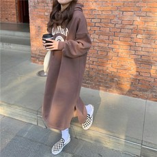 윈썸 데일리 기모 후드 롱 루즈핏 따뜻한 여성 원피스