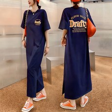상상그이상 여성용 국내제작 간절기 베이스볼 원피스 빅사이즈 레터링 롱티셔츠 심플 포인트 사계절 면 데일리룩