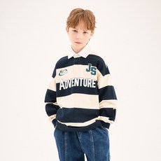 젤리스튜디오 아동용 보더 스트라이프 럭비 카라 티셔츠