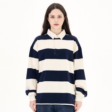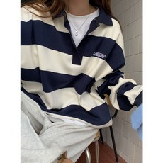 [57차입고무료배송] 캐주얼 스트라이프 루즈핏 오버핏 프레피룩 자수 럭비셔츠