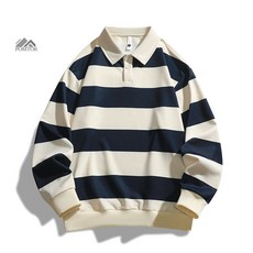 POMTOR 남성 봄가을 루즈핏 맨투맨티 스트라이프 카라 맨투맨