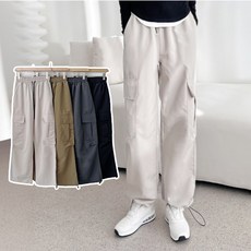 남자 캐주얼 카고 긴바지 밴딩 와이드 얇은 일자 팬츠