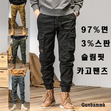 군밤마켓 핏깡패 남자 허리밴딩 워싱면 슬림핏 카고팬츠 9366