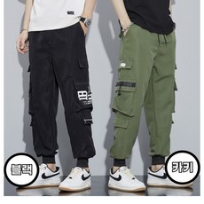 [투뎃] 남성용 허리밴딩 스판 카고 조거 팬츠