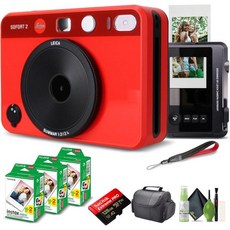 라이카 소포트 2 하이브리드 인스턴트 포토 필름 디지털 카메라화이트19188 후지필름 20매 128GB 메모리 카드 가방 클리닝 키트 LCD 디스플레이 번들, Red_W/ 60 Sheets