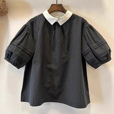 LALABELLE 여성용 블라우스 카라넥 베이직 버튼 핀턱 퍼프숄더 페미닌 셔츠 블라우스