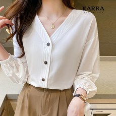 여성 V넥 브이넥 블라우스 긴팔 골드장식 [윙즈]