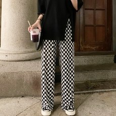 1+1 여성 찰랑 밴딩 츄리닝 바지 체커 보드 팬츠 시원한 바지