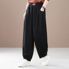 ROYALBELLE 여성 루즈핏 트렌디 밴딩 벌룬 바지 디자인 단색 베이직 롱 팬츠 캐주얼룩 V110758